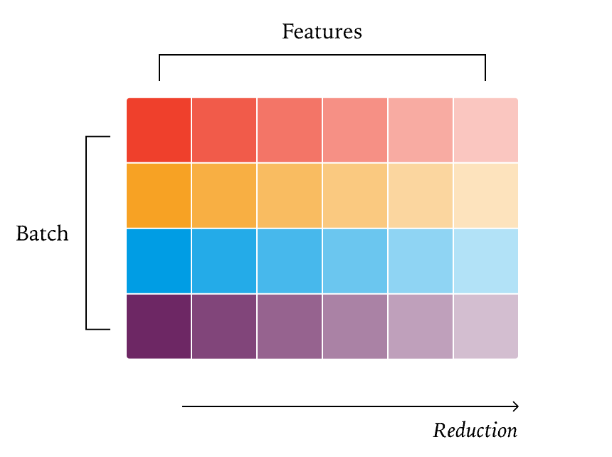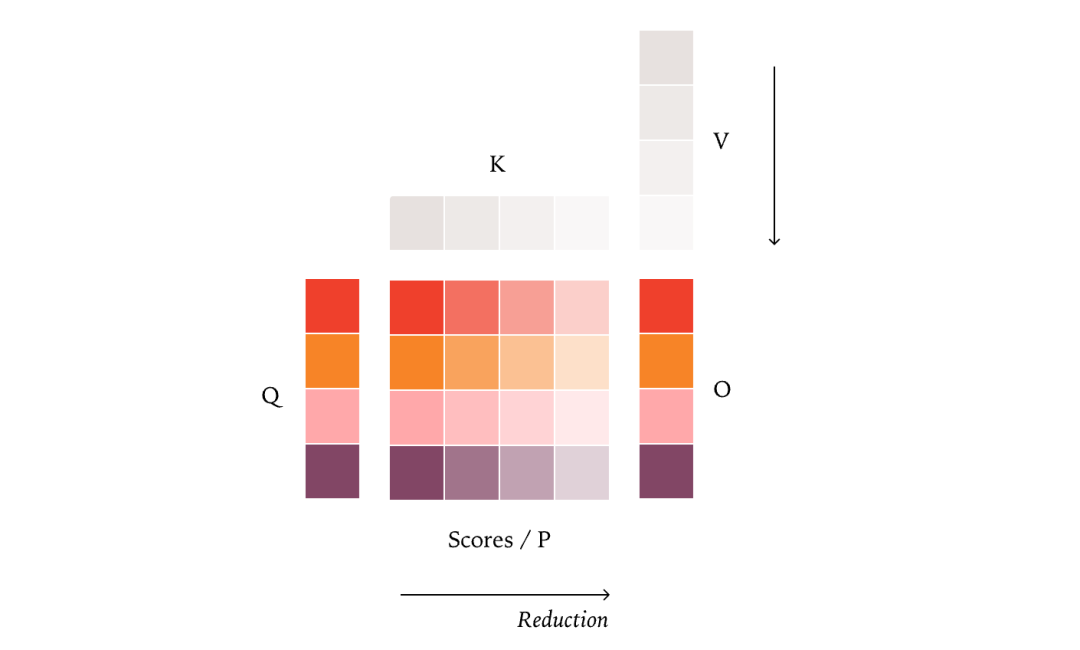 其中每个核心计算都属于该块的点积,再在该核心中执行归约操作。