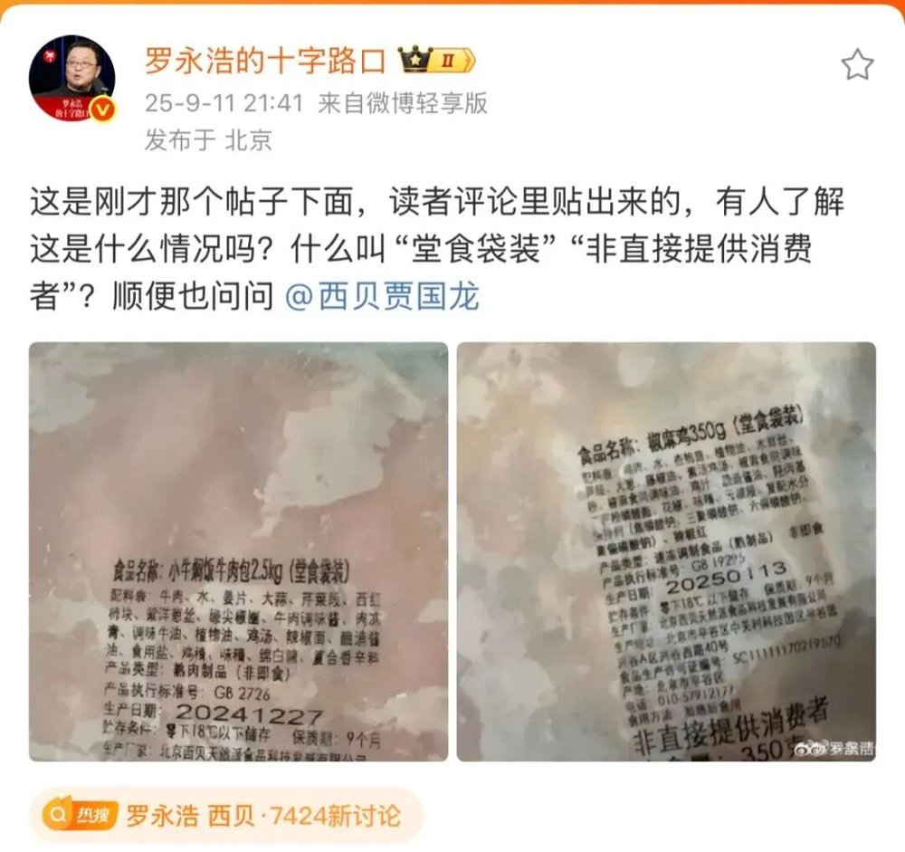 4.罗永浩在微博中晒出的消费者提供的照片,显示西贝生产的“小牛闷饭牛肉包2.5kg 等照片,是真的吗?