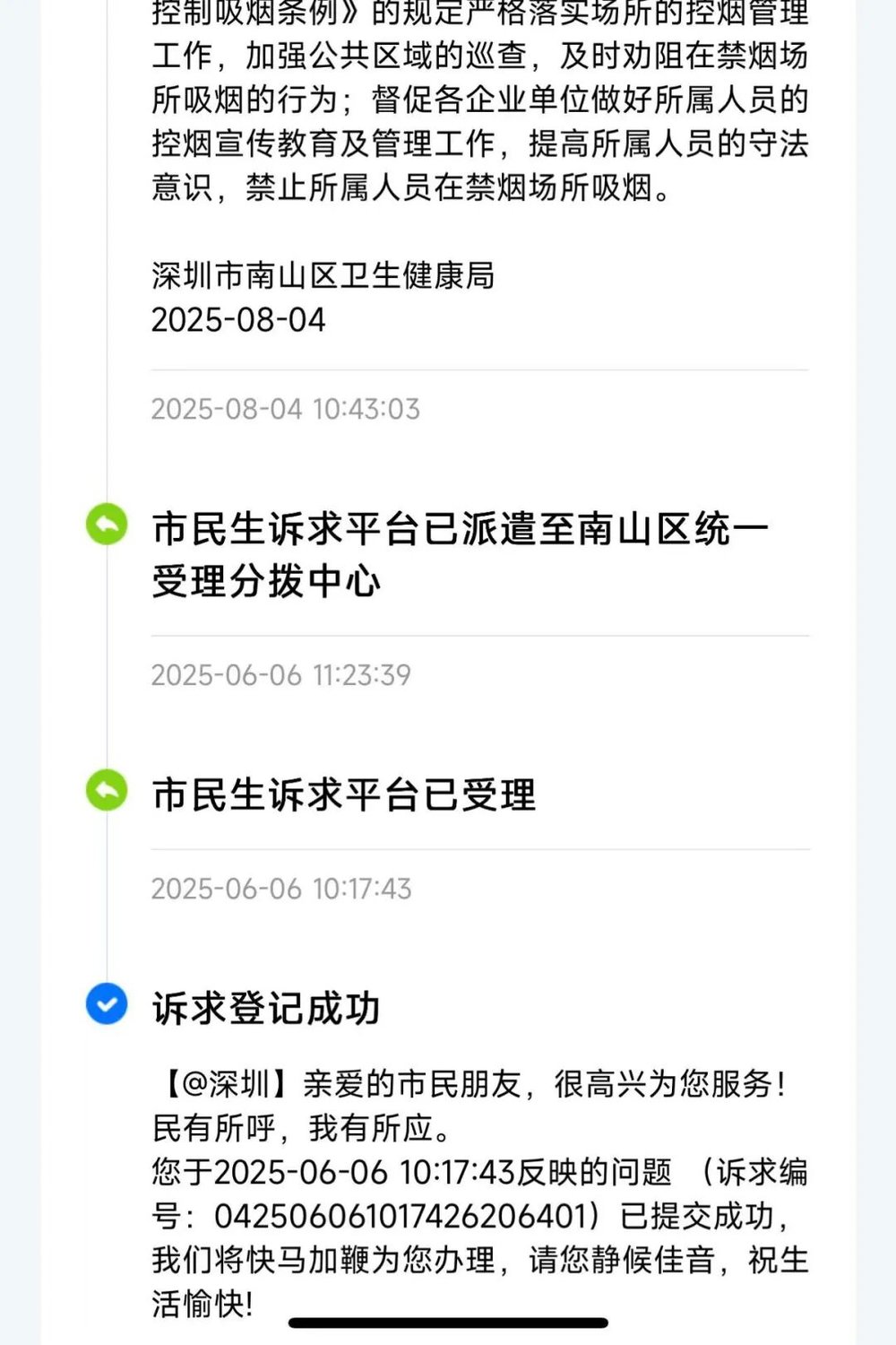 6月初,我在平台上提交了投诉。受理速度很快,当天就派单给了卫生健康局。我心里还小小地期待了一下,觉得这次也许真有戏。