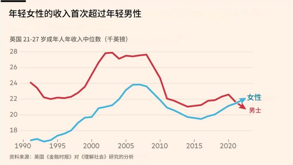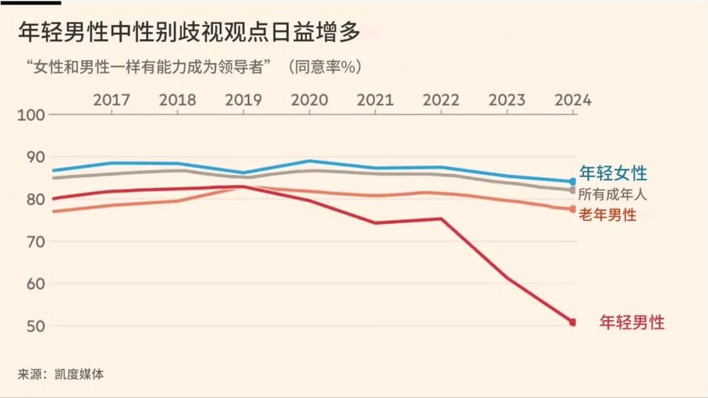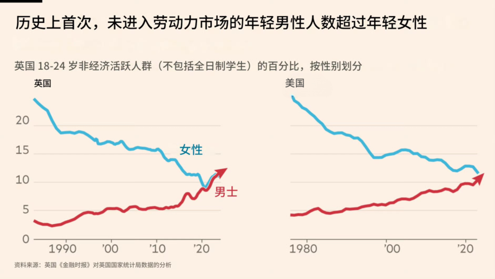 这也是FT2024年刊出重磅专栏文章,用详尽数据想说明的事情:“两性间的差异甚至让“Z世代”可以被视为两代人,而非通常所认为的一代人。”