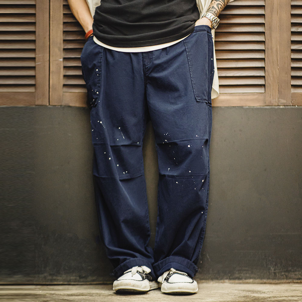 MADEN马登推出的这款男士工装降落伞裤值得关注。它是泼墨双膝设计,宽松直筒版型,属于休闲裤类型。这种设计既时尚又舒适,能满足男士日常休闲穿着的需求。