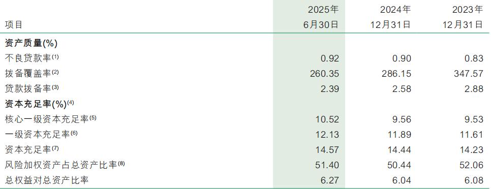 截至2025年6月末,邮储银行的拨备覆盖率为260.35%,较上年末的286.15%继续减少25.8个百分点,较上年同期的325.61%抹掉65.26个百分点。