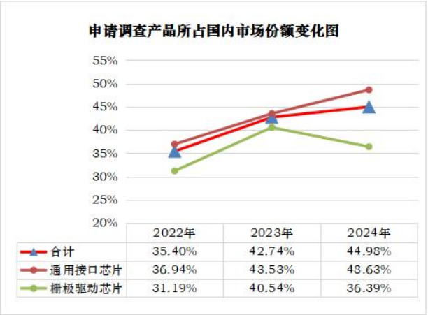 根据江苏省半导体行业协会提供的申请书,美国企业德州仪器、ADI、博通、安森美等四家公司,在对中国的相关产品累计增长37%,进口价格累计下降52%,压低和抑制了国内产品销售价格,对国内产业的生产经营造成损害,包括毛利率低、开工率低等问题。