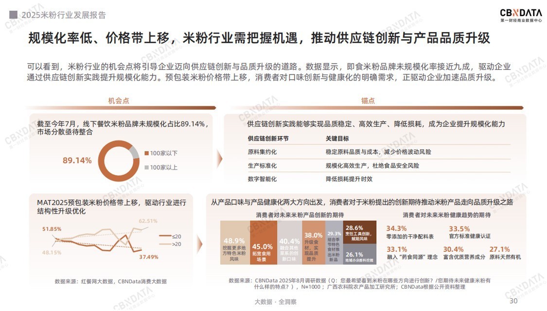 另一方面,行业自身规模化率低、价格带上移的现状,又为发展锚定了创新升级的明确路径。报告指出,企业需从供应链端发力,借原料集约化稳定品质成本、生产标准化保障高效安全、数字智能化降本提效,提升规模化能力;同时,紧盯消费者对口味创新与健康化的期待,推动产品品质进阶。