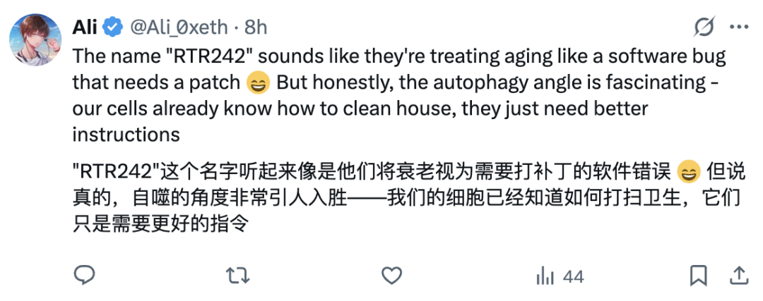 所以人们普遍认为,改善这个机制是抗衰老的可行手段之一。