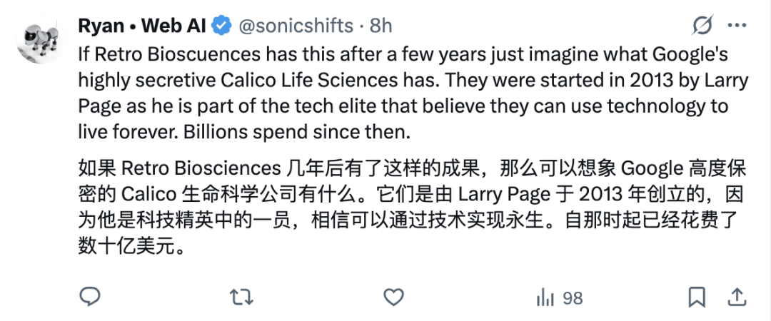 但相比起Altos,网友们更好奇的是:如果Retro在几年内就能做出这样的结果,谷歌高度保密的Calico生命科学公司做了什么?
