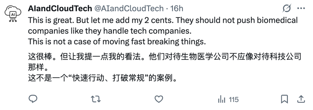 有网友认为:他们对待生物医学公司不该像对待科技公司那样,这不是个需要快速突破的领域。