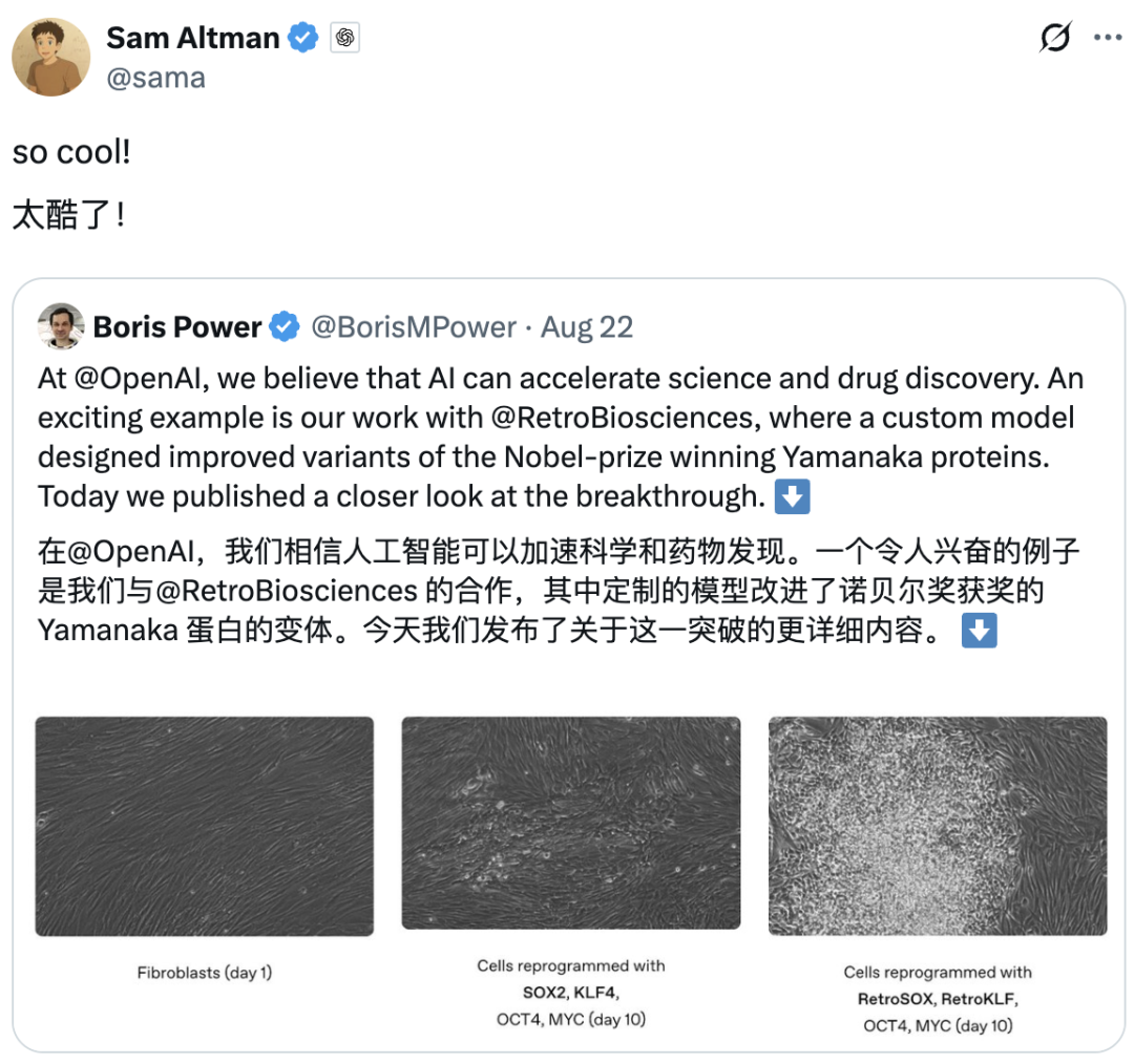 该公司之前与OpenAI合作开发了一款模型,能够将普通细胞转化为干细胞——