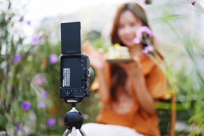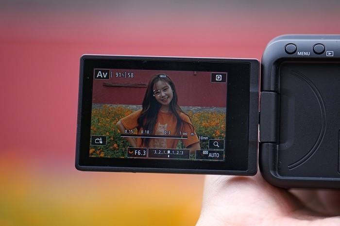 佳能R50 V 的操作界面设计非常符合现代创作者的需求,机身正面与顶部的按钮布局简洁明了,大大减少了操作的复杂性。尤其在拍摄 Vlog 或直播时,顶部和正面大尺寸的视频录制按钮让操作变得更加直观,轻轻一按便可启动视频拍摄,避免了繁琐的步骤,提升了拍摄的灵活性。