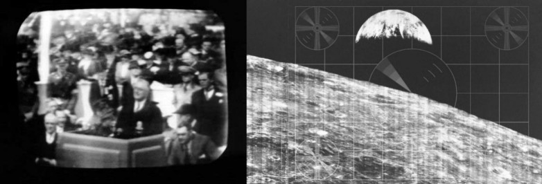 左图RCA推出世界首台黑白电视机 右图RCA为NASA登月提供摄影设备