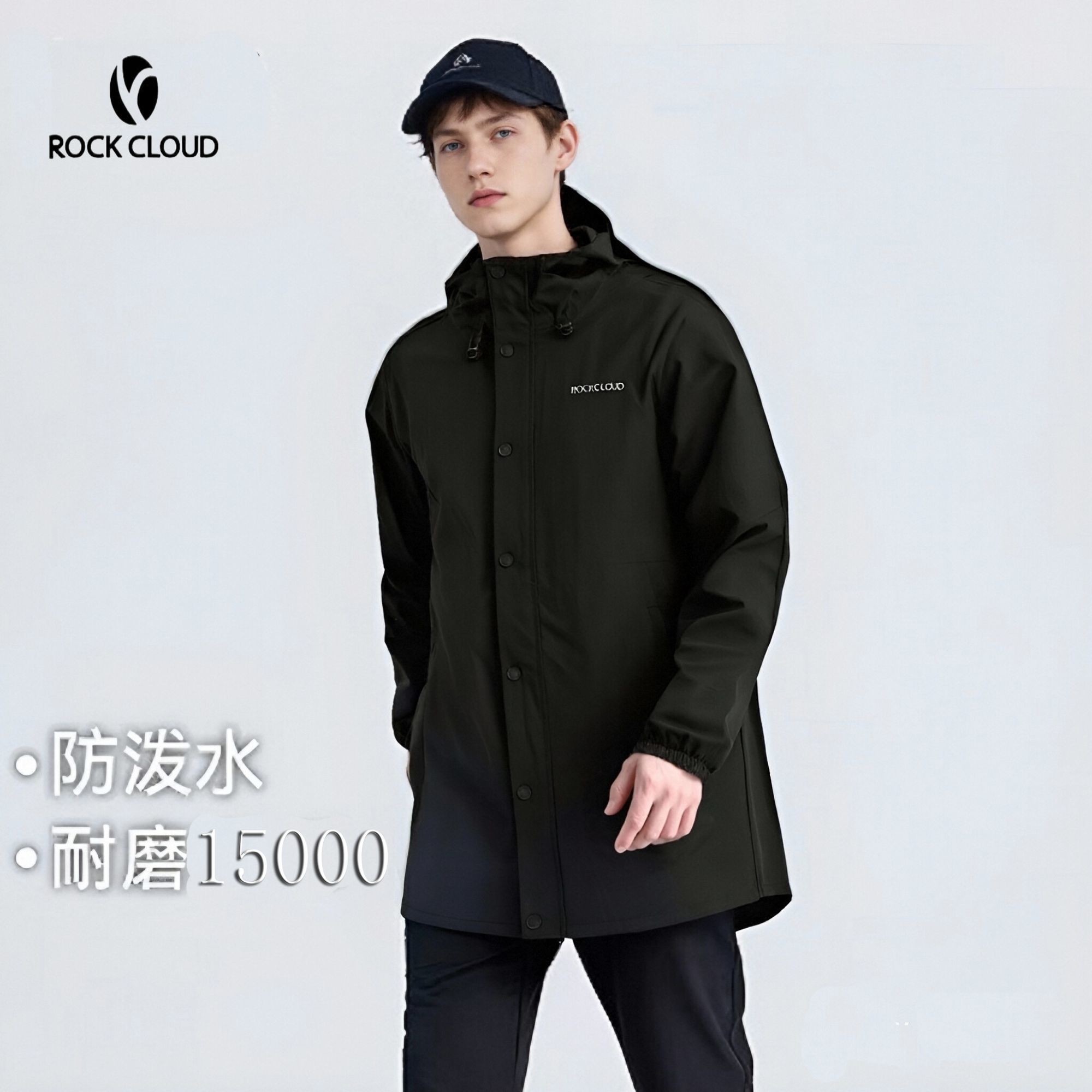 Rock Cloud岩云连帽夹克男春秋款户外中长款风衣黑色防风防水运动登山服,专为户外爱好者打造,集防风、防水、透气于一体,适合春秋季节日常通勤及户外登山等多种场景。采用高品质面料,耐磨抗撕裂,连帽设计搭配可调节抽绳,有效抵御风雨侵袭,立体剪裁提升穿着舒适度与活动自由度。拉链口袋安全实用,细节做工精致,兼顾功能性与时尚感。