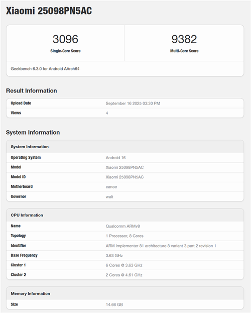 近日,小米旗下一款型号为“25098PN5AC”的机型跑分现身Geekbench数据库,经博主体验more透露,此款机型正是小米17 Pro。
