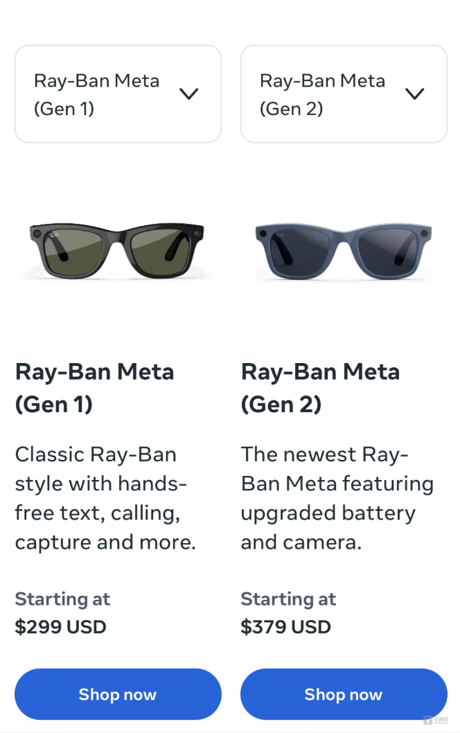 在价格上,Ray-Ban Meta Gen 2起售价为379美元,有多种款型和颜色可选,也可以配近视镜。而上一代Ray-Ban Meta也会继续售卖,起售价为299美元,性价比更高。其实,上一代Ray-Ban Meta也支持3K视频拍摄,只不过基于续航原因并没有开放。