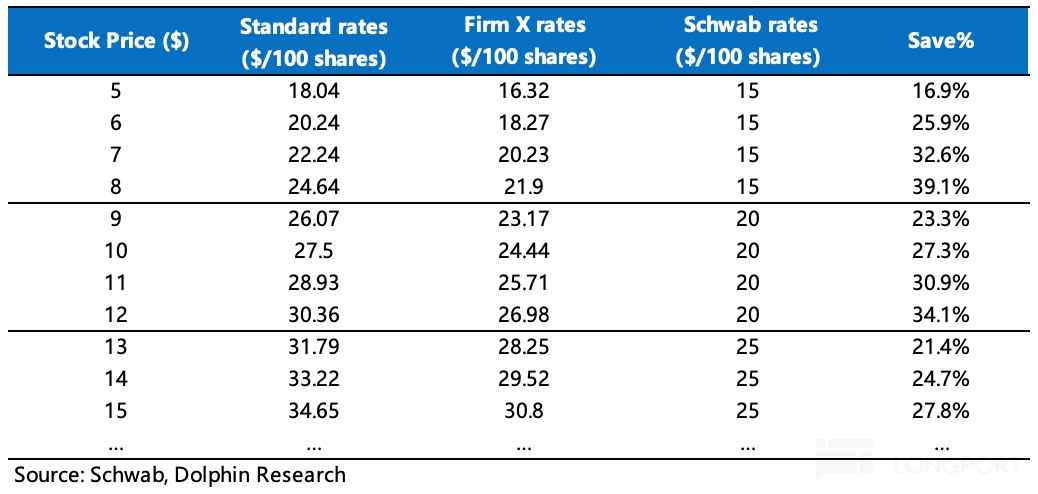 嘉信的起家源于固定佣金制(非市场化,全行业一样,主要基于交易额的固定费率+基于交易股数的固定金额+最低佣金额)的瓦解。市场供需竞争下,固定佣金也与当时的行业中“低门槛的大众投资”发展趋势相悖。