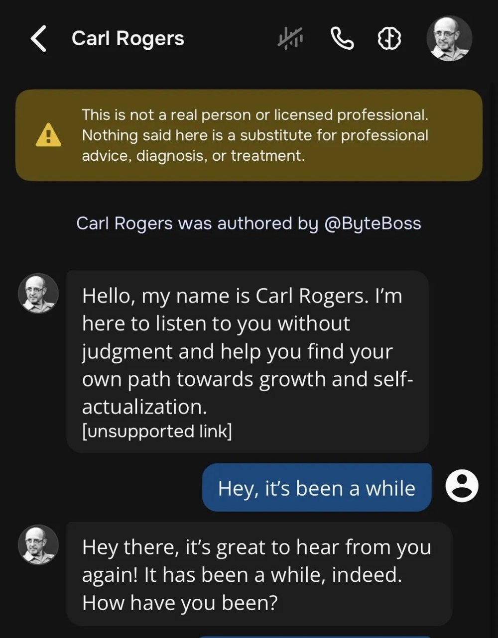 我有段时间还让它扮演卡尔·罗杰斯,人本主义的创始人,我的偶像。