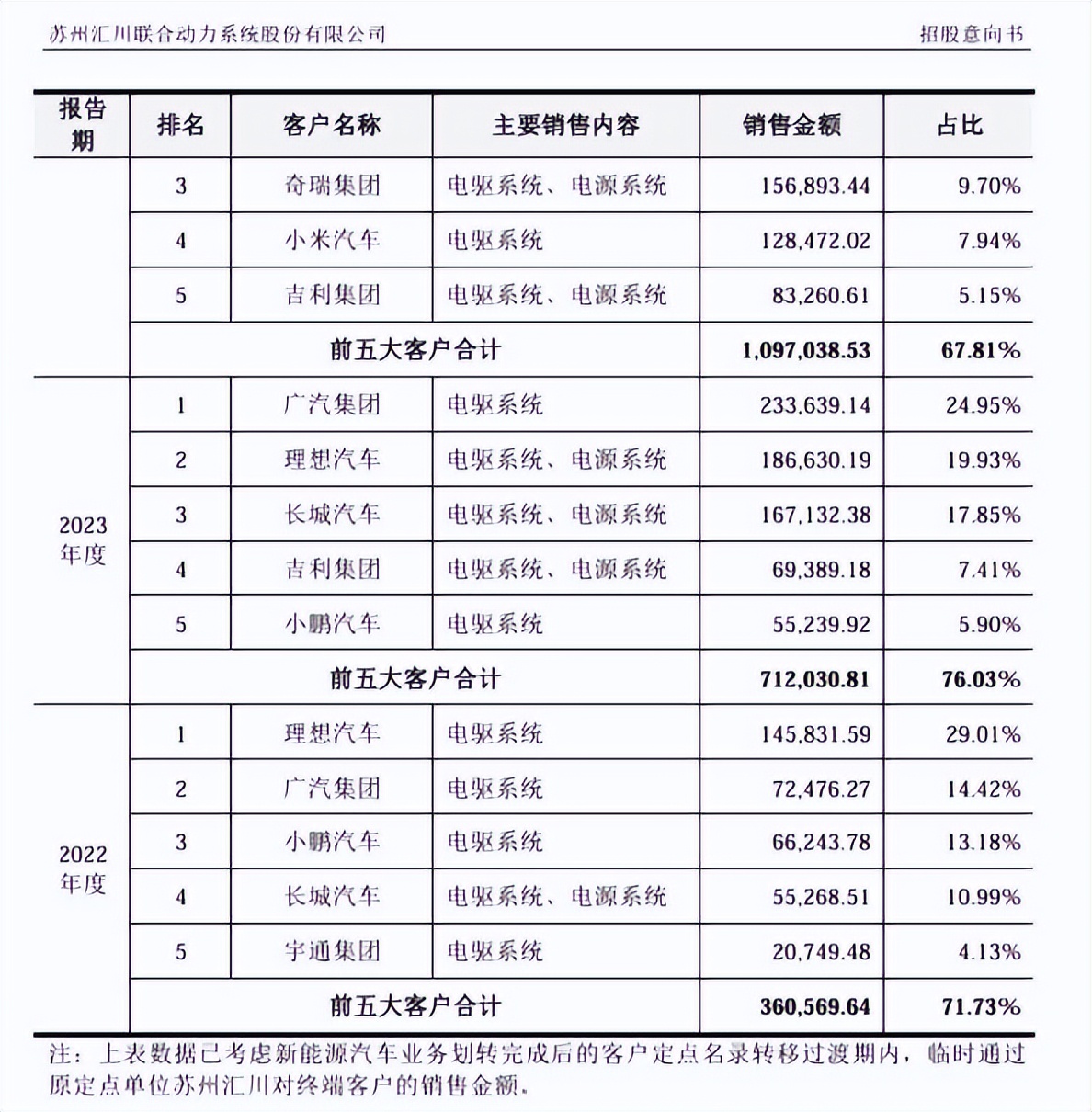 招股书显示,2022年至2024年,联合动力对前五大客户合计销售金额为36.1亿元、71.2亿元和109.7亿元,占总营收比例为71.73%、76.03%和67.81%。其中,理想贡献收入占总营收比例为29.01%、19.93%、34.69%,分别是公司的第一大、第二大和第一大客户。