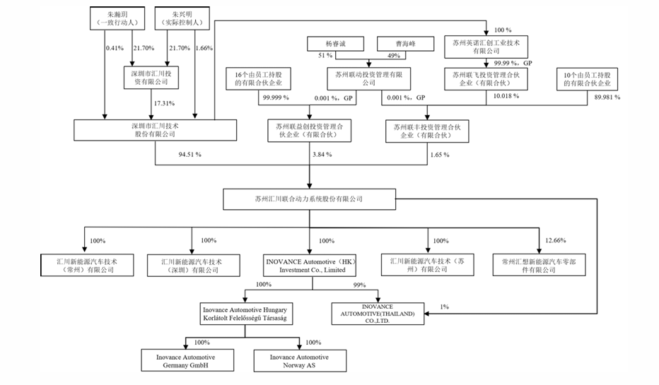 据招股书显示,IPO前,汇川技术拥有联合动力94.51%的股份,而朱兴明父女合计控制汇川技术19.38%股份对应的表决权,既是汇川技术的实控人,亦为联合动力的实控人。