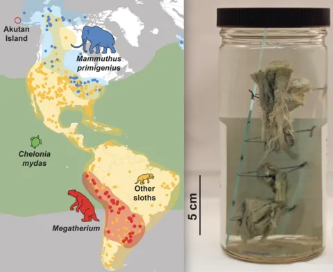 据说这块肉是由俱乐部成员伯纳德·哈伯德神父从阿库坦岛带回来的。在被他发现时,这头猛犸象仍然处于冰冻状态。