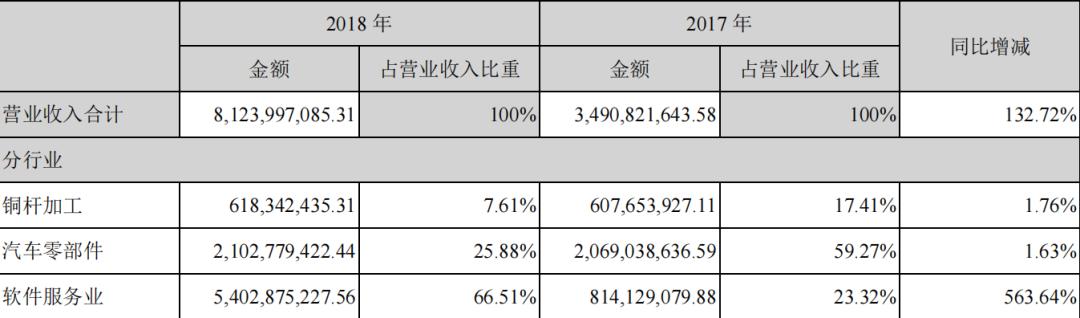 但此时,铜杆加工业务和汽车零部件加工业务仍旧贡献了总营收的80%。