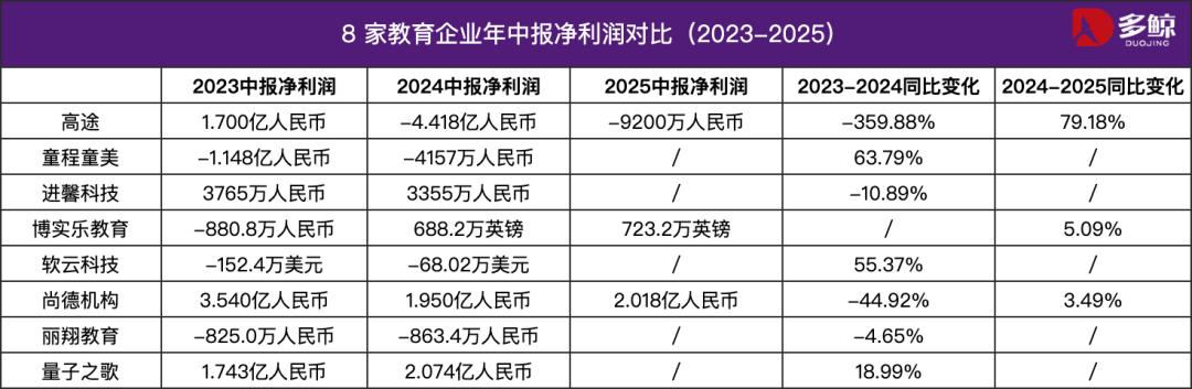 表格 2:8 家教育企业年中报净利润对比(2023-2025)(数据来源:东方财富网)