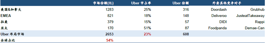 图:Uber外卖市场全球布局 资料来源:Uber公告,华泰证券