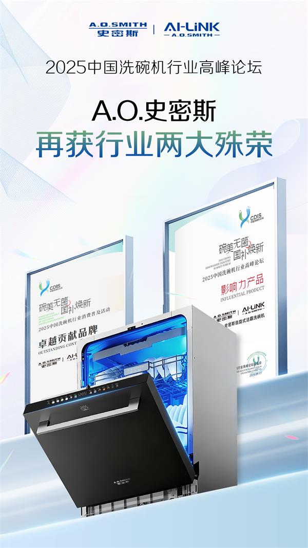 🏆 **行业认可与技术实力**:A.O.史密斯在“2025中国洗碗机行业高峰论坛”上荣获“卓越贡献品牌”与“影响力产品”两项殊荣,彰显了其在洗碗机行业的领先地位和创新实力。其获奖的自旋式洁霸洗碗机,通过专利自旋技术,能够有效应对重油污和顽固污渍,并已获得中家院(CHCT)的五星认证,证明了其卓越的清洁性能。