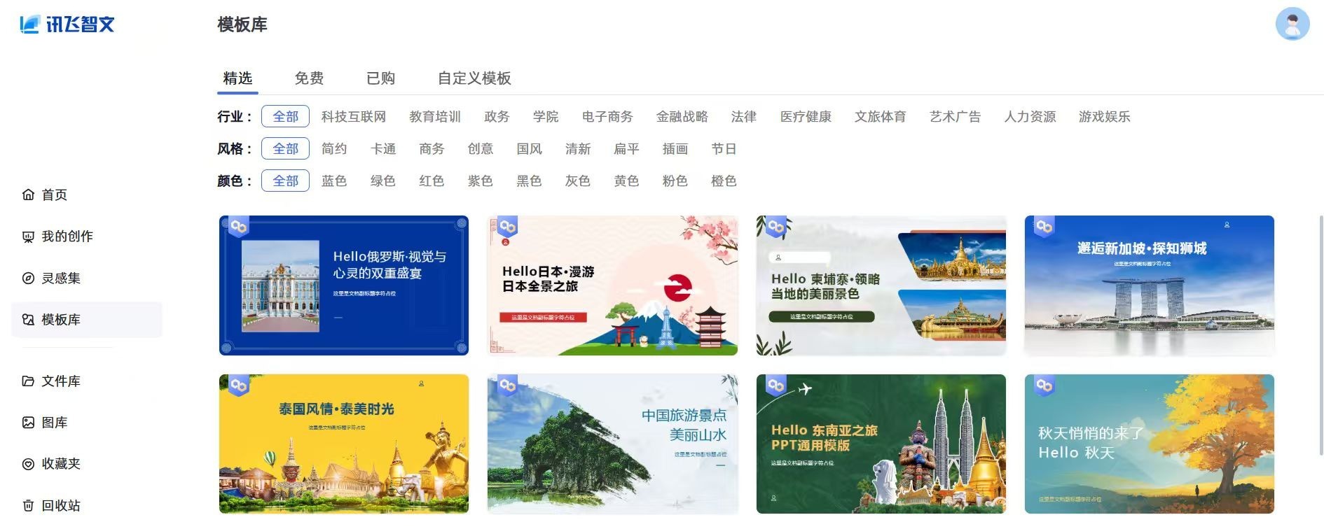🎨 **本土化模板与应用场景:** 针对东盟市场,讯飞智文特别设计了融合新加坡、泰国、柬埔寨等东南亚国家文化元素的PPT模板,使其内容更贴合地域特色,能够高效完成多种跨境沟通与展示任务,满足不同用户的个性化需求。