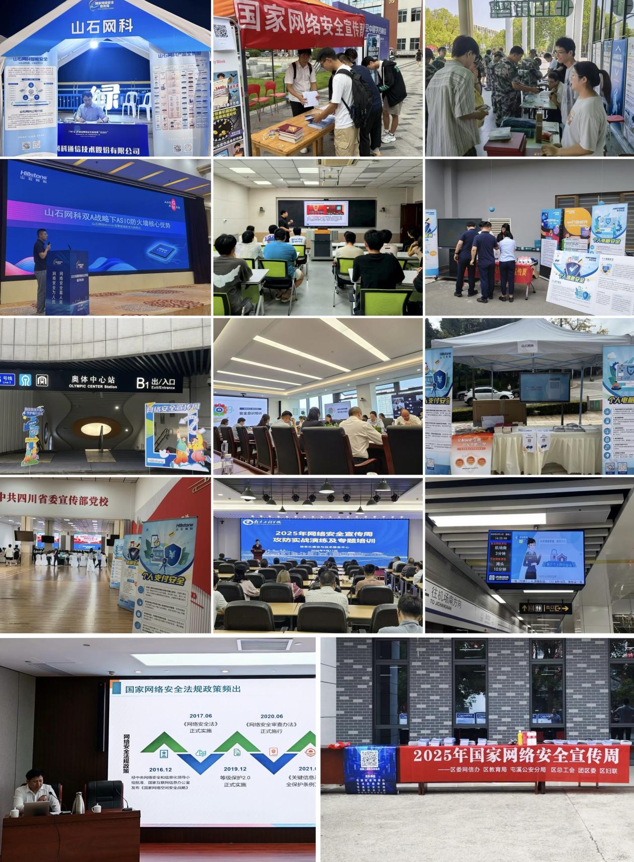 2025年国家网络安全宣传周期间,山石网科连续第十二年参展,聚焦“双A战略”(ASIC+AI)的核心技术成果。在主会场,公司展示了自研ASIC安全专用芯片的优势,并获得高度评价。同时,山石网科还在全国多地开展网络安全知识普及、安全理念传播和技术赋能活动,覆盖政府、金融、能源等关键行业。通过AI驱动的安全智能体、Open XDR平台和数据安全治理方案,山石网科致力于为全行业用户提供先进的网络安全解决方案,助力高质量发展。