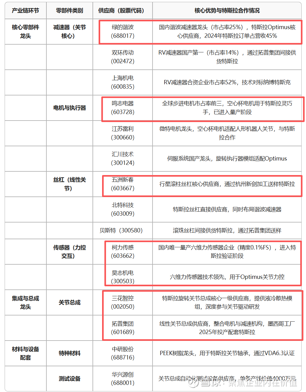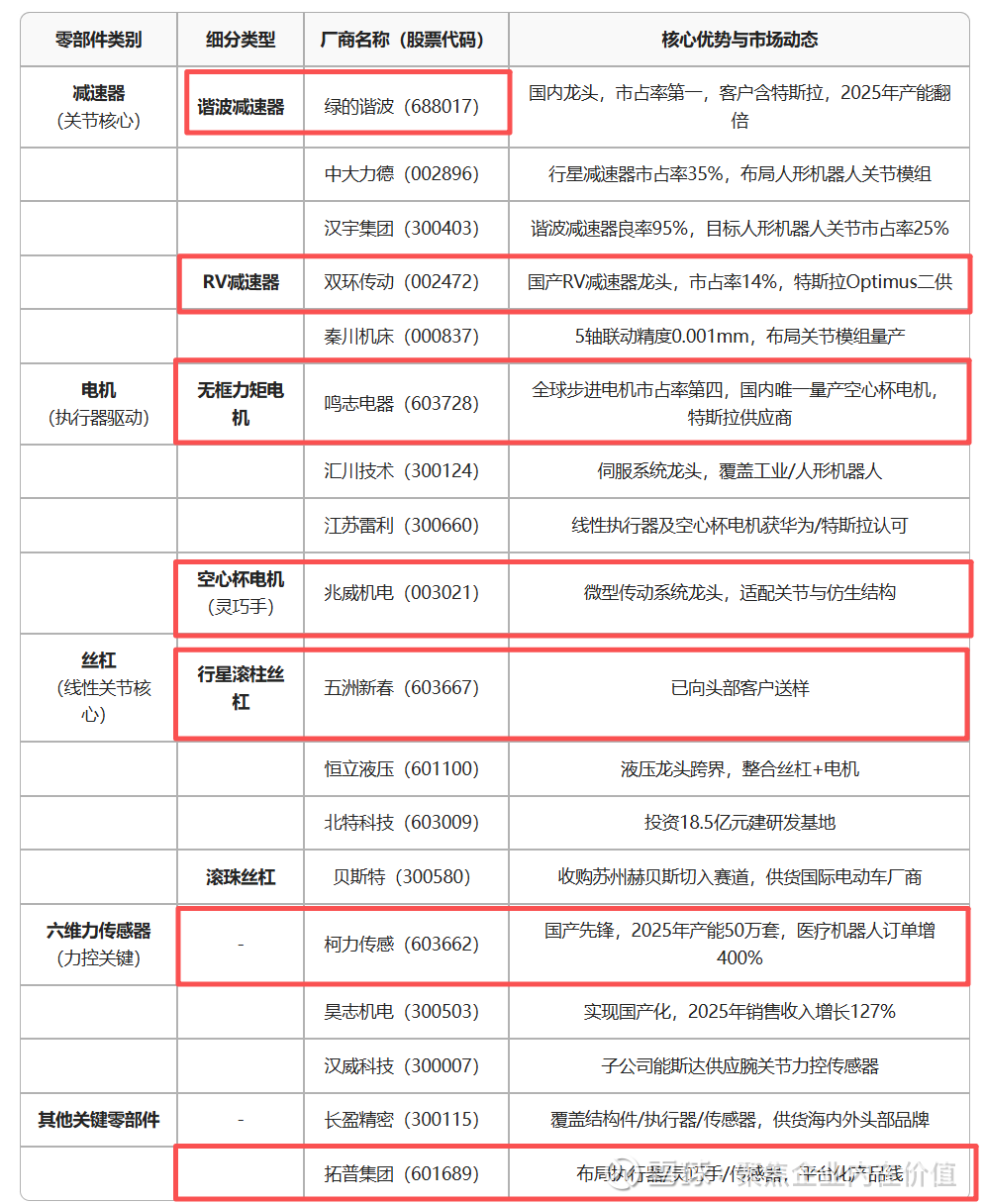 投资逻辑:关注已进入特斯拉、优必选等供应链的标的(如绿的谐波、鸣志电器)及技术突破企业(如五洲新春、昊志机电)