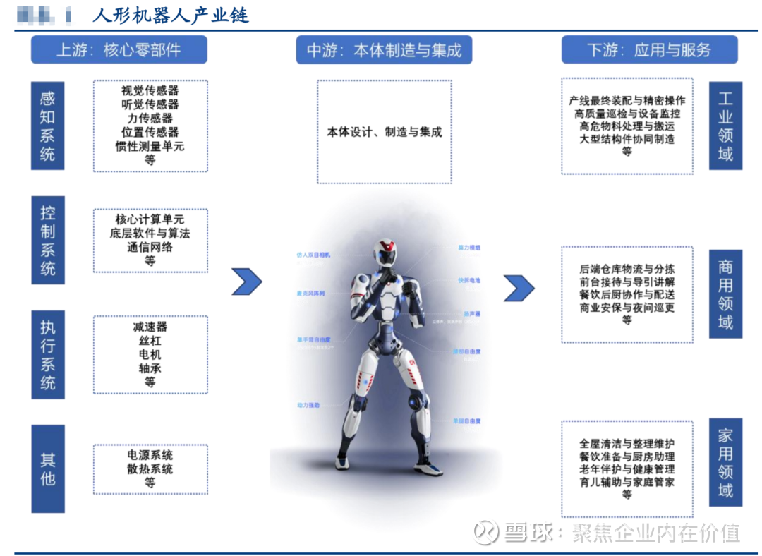 人形机器人产业的预期很大,核心价值量主要在上游核心零部件。