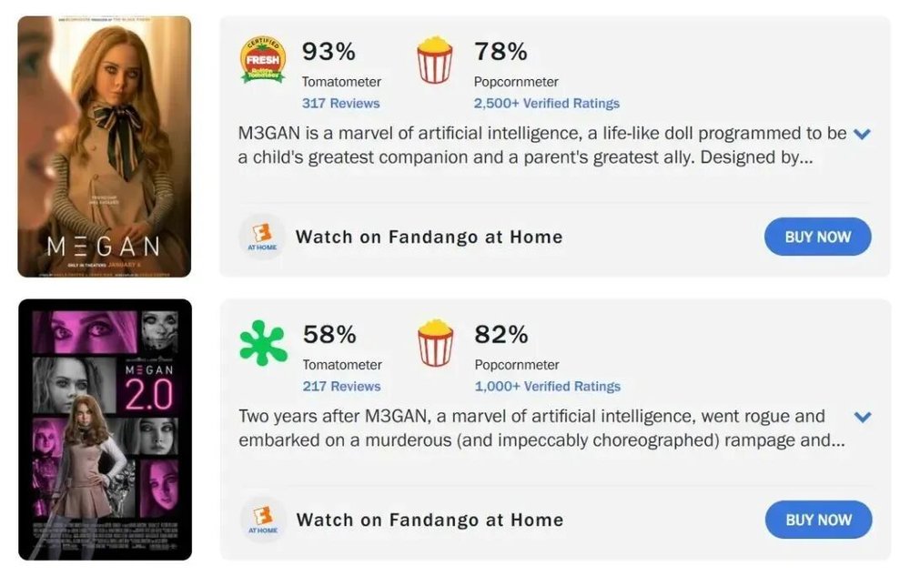 《梅根2.0》烂番茄指数(图源:@电影烂番茄1)