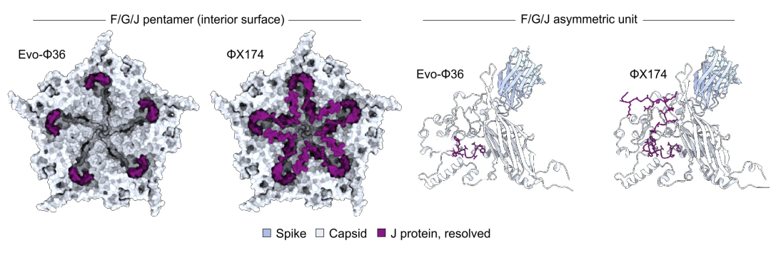一个非常有趣的发现是,合成噬菌体之一Evo-Φ36整合了,远亲噬菌体G4的DNA包装蛋白——J蛋白(25 vs 38个氨基酸)。