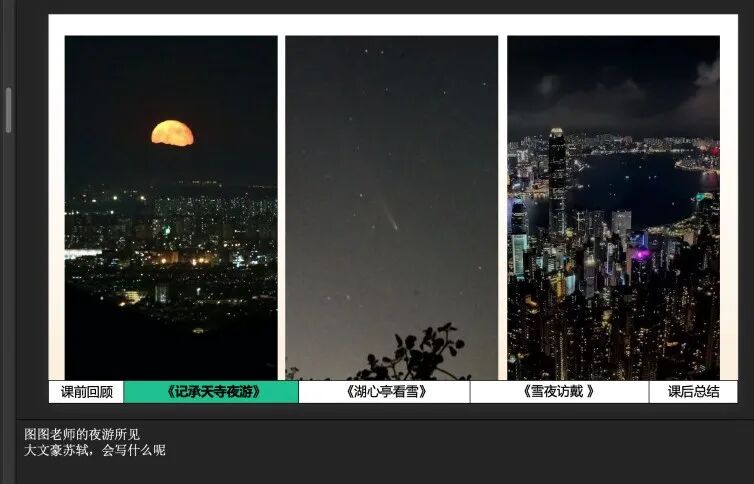 有一次读到《记承天寺夜游》,她一时兴起,趁着夜色入户,也体验了一把苏轼拉着怀民夜游的场景。在她的朋友圈里,还能看到那轮照过今人也照过古人的月亮。