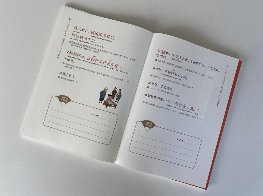接下来,孩子们可以尽情地大声诵读,去感受古文中独有的韵律和抑扬顿挫。原本像天书一般的文章,不用死记硬背,已经理解了一半。