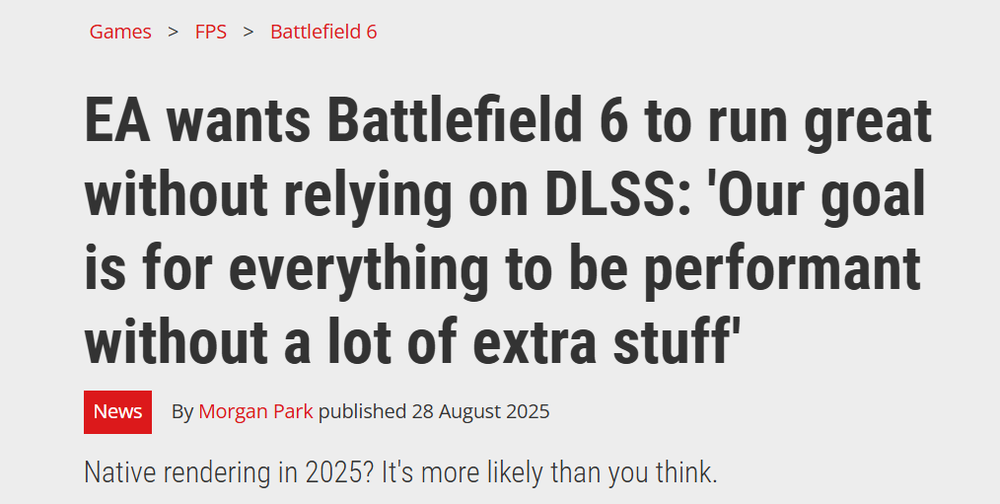 EA希望《战地6》在不依赖DLSS的情况下也能流畅运行:“我们的目标是无需借助额外技术就能实现高性能表现”