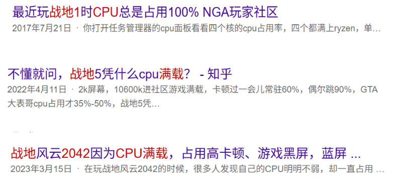 《战地》由于大战场多人的原因,近几代都存在的旺盛的CPU性能需求,包括这次战地6B测很多人遇到CPU满载卡顿,都是前几代的老生常谈的问题了。