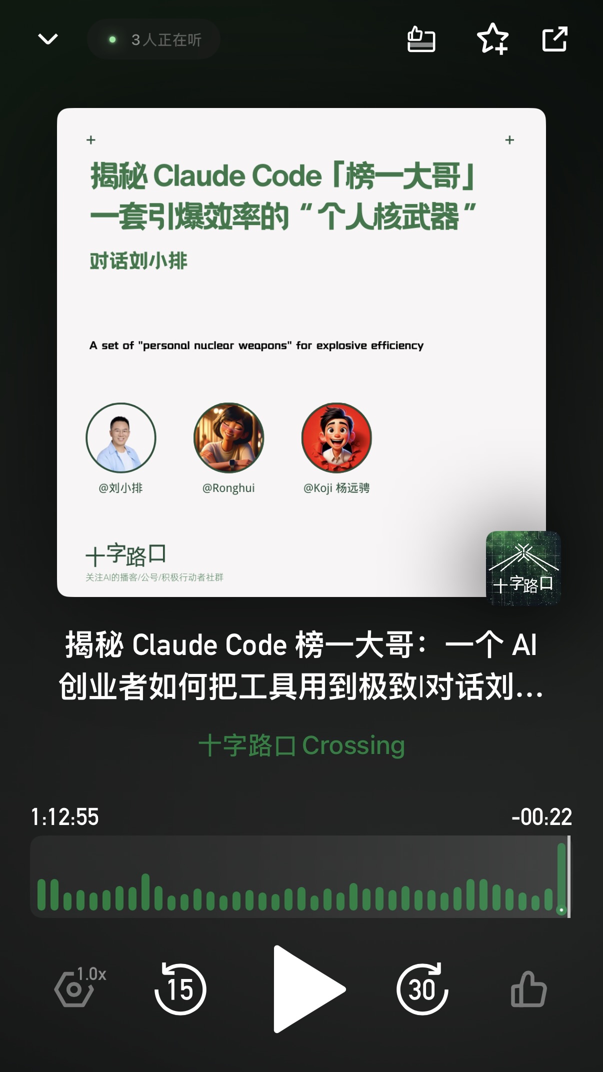 最近听的最有价值的播客,是 Claude Code 使用量全球榜一大哥,刘小排在koji的十字路口的播客。