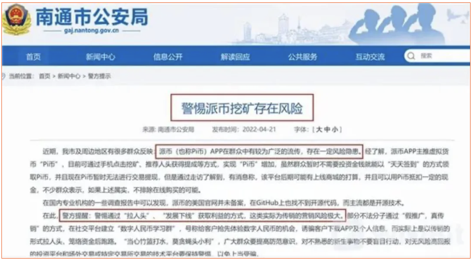 如果要用更直接的方式理解Pi币的潜在风险,那么你将看到:在2023年的央视报道中,Pi币曾被公安质疑带有诈骗属性。