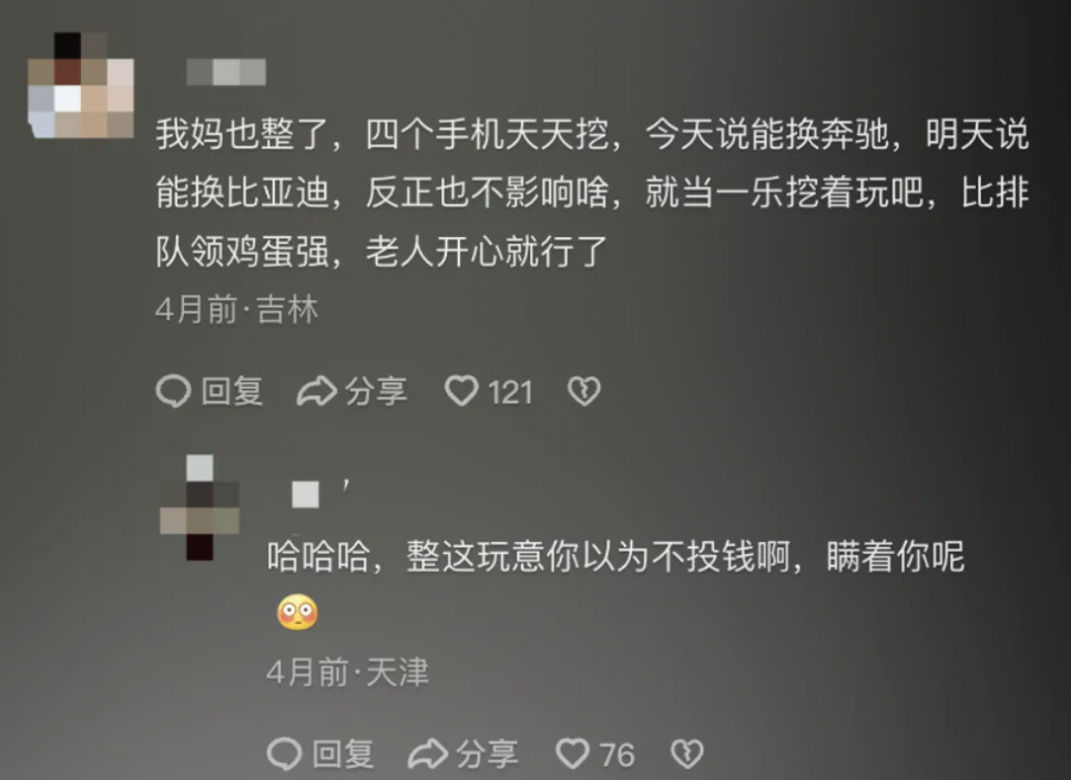 这样隐形骗局的阴险之处,就在连子女知道家里老人挖Pi币后,都容易产生“不花钱就随他去吧”的情绪。