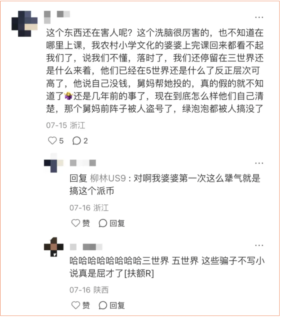 所以直到今天,已经被骗钱的老年人,还相信“有人在借着Pi币名头做坏事,但这和Pi币没关系,我还能发财”。