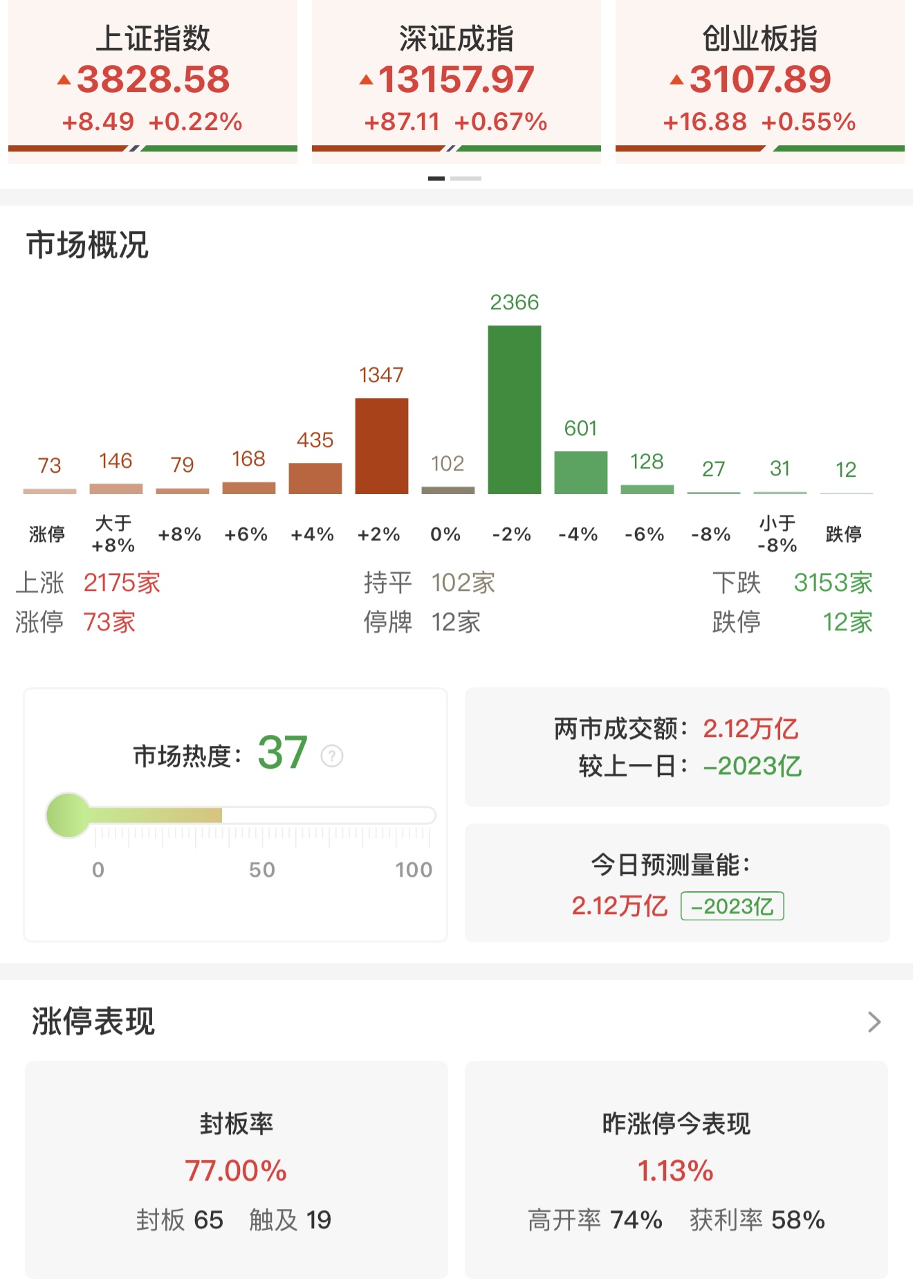 【收评:科创50指数大涨3.38% 多只芯片股创历史新高】财联社9月22日电,市场全天震荡拉升,三大指数均收涨。在芯片概念股的带领下,科创50指数盘中一度涨逾4%。沪深两市成交额2.12万亿,较上一个交易日缩量2023亿。从板块来看,消费电子板块表现活跃,立讯精密一字涨停。芯片产业链延续强势,其中德明利两连板创历史新高,芯原股份触及20cm涨停创新高,中芯国际、海光信息、江波龙等多只芯片概念股大涨创历史新高。受现货黄金新高的影响,尾盘黄金板块走强,晓程科技、中金黄金快速拉升,湖南白银涨停。下跌方面,影视院线和旅游板块大跌,金逸影视跌停。板块方面,贵金属、芯片产业链、消费电子等板块涨幅居前,影视院线、旅游、白酒等板块跌幅居前。截至收盘,沪指涨0.22%,深成指涨0.67%,创业板指涨0.55%。