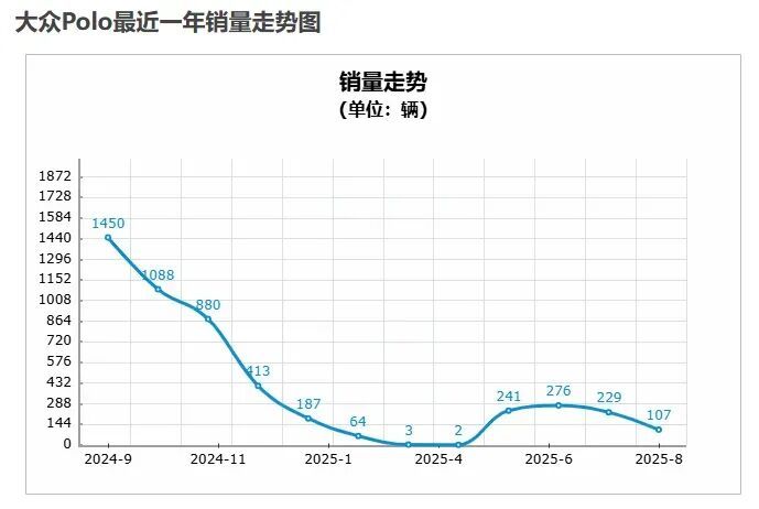 今年8月,大众Polo的销量只有区区107辆。