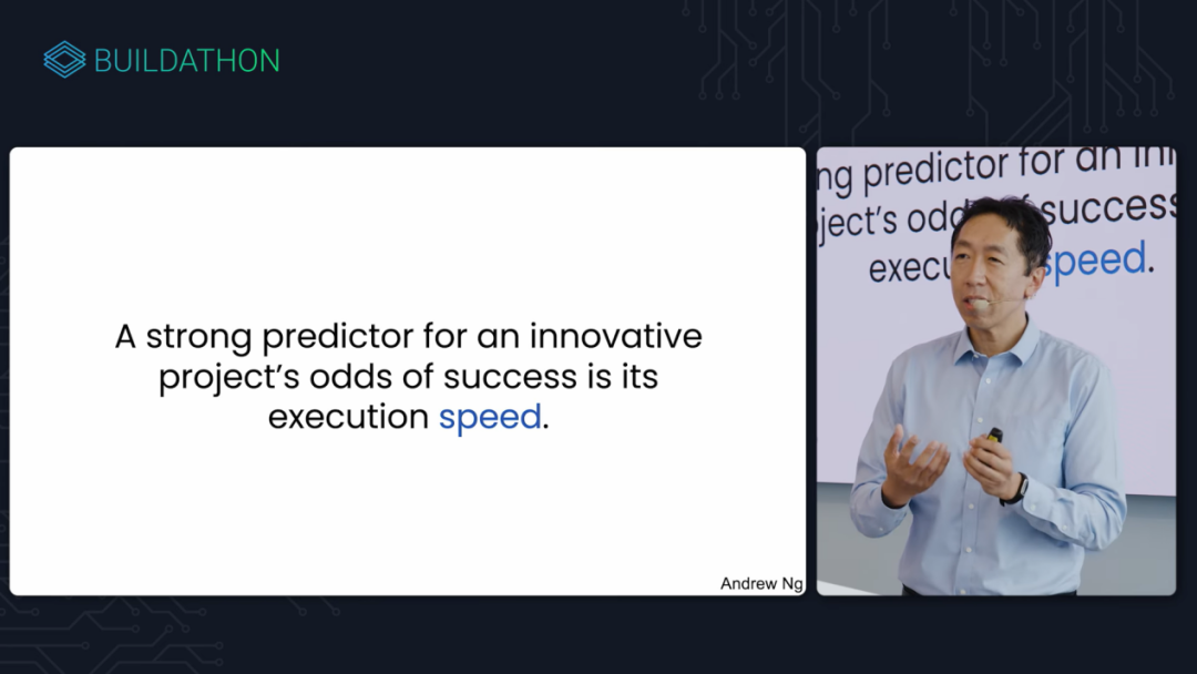 我发现,当你尝试做一些创新的事情时,无论是像AI Fund那样建立一家初创公司,还是在更大的企业环境中进行创新,预测项目是否可能成功的最大因素之一是速度。有些团队只需以迅猛的速度执行,就可以让他们获得更多的迭代、尝试更多的事情,成功的几率就会大大提高。