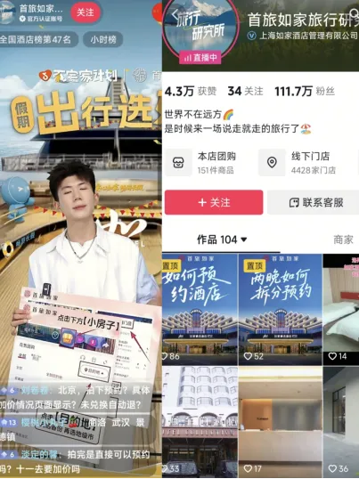 但今年9月,上海外滩悦榕庄在抖音平台上线了3999元住两晚的预售券,一经上架,两场直播产品销售额超过500万,酒店抖音官方账号更是涨粉超120%。