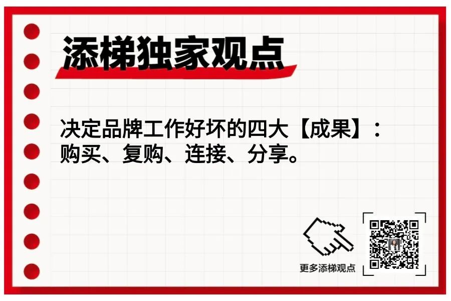 品牌工作毕竟不只是销售工作。品牌工作不单单以“购买”作为评估成果的一个标志,除了购买,还有其他三件事,也可以表示品牌的工作有了“成果”。