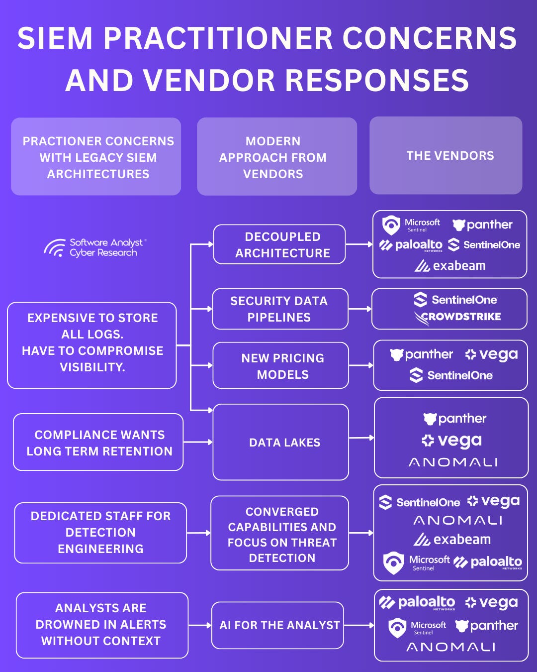 In 2025, vendors are re-defining what a SIEM platform should look like by directly tackling the problems organizations have long faced with legacy tools. Some ways they are doing so: