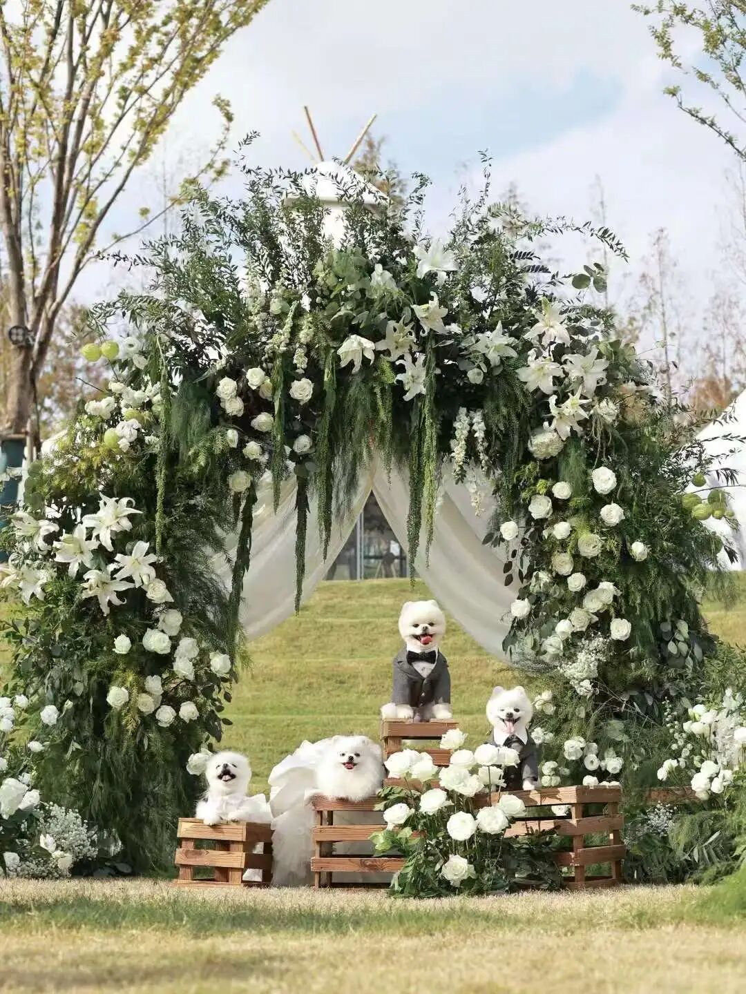 “两只小狗的镜头感特别好,起初只是给它们拍了婚纱照,后来又有了办婚礼的念头。也是想趁这个机会把好朋狗们聚在一起,就像每年都办的生日会一样。想法越来越多,婚礼就变得很隆重了。”@Dear-糯米圆子介绍。