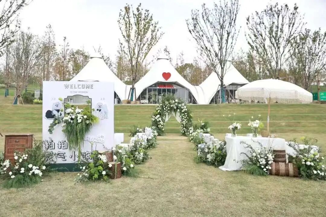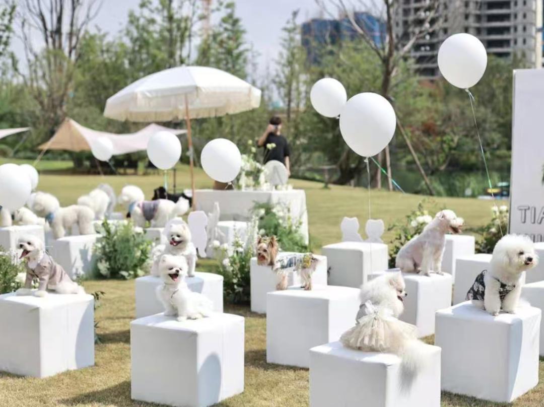 今年九月,两岁半的玉米和三岁的条条,就在武汉的麓客岛公园举办了一场别开生面的宠物婚礼。