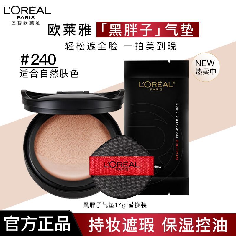 L"OREAL PARIS 巴黎欧莱雅 欧莱雅黑胖子气垫替换芯bb霜保湿哑光持久提亮控油粉底液不脱[经销商] 拼多多[产品售价] ¥50.6元进入购买[#zolsplit_ecb电商推广区域分隔符结束#]