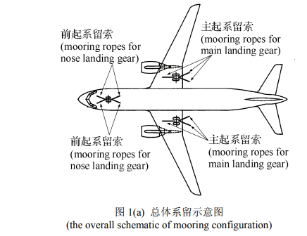 在上海飞机设计研究院选用的方案中,更是精细到“前后、左右开弓”,从前左、前后、后左、后右四个方向分别用系留绳绑起,使绳子与地面形成45°的稳定角[22]。